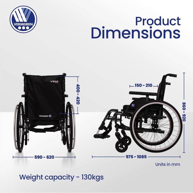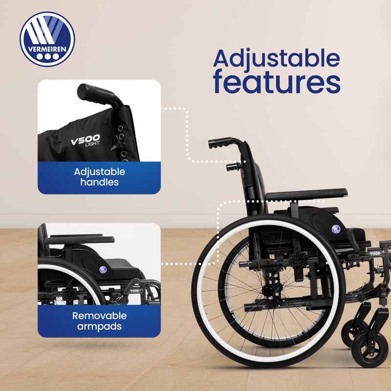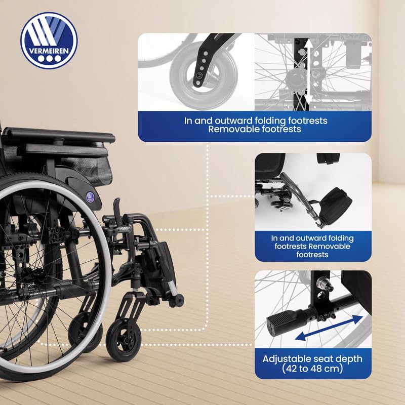 ✅ BELGIUM BRAND: Vermeiren is a Belgium based brand, first time in India with Made in India Range of products. ✅ SOLID CHOISE: Its quick-release rear wheels add convenience, making it easy to transport and store. With a focus on long-lasting quality, the V500 is a solid choice for those seeking a dependable, user-friendly wheelchair. ✅ IT'S DIFFERENT: Building on the classic V500 model, the V500 offers enhanced comfort and functionality with ergonomic handgrips, adjustable and removable armrests (with optional height adjustment), and adaptable leg rests. ✅ SOLID CHOISE: Its quick-release rear wheels add convenience, making it easy to transport and store. With a focus on long-lasting quality, the V500 is a solid choice for those seeking a dependable, user-friendly wheelchair. ✅ SPECS: Wheelchair Weight - 23kg. Rear Wheel - 24inches & Front Wheel - 200*50mm.