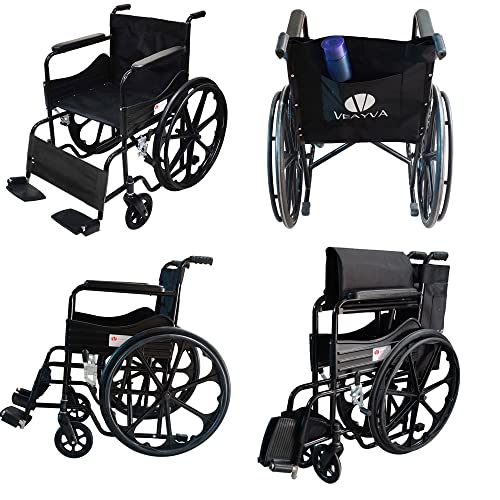Veayva Folding mag wheel chair with dual break and sharp black colour
