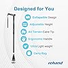 Up To 8 Adjustable Height: Rehand adjustable cane fits for people from 5'(152cm) to 6'5''(195cm). 8 adjustable height with one-inch increments makes almost all seniors, elderly and injured persons can easily adjust the cane to proper height fitting user's height. The adjusting range of walking stick itself is from 2'7'' (78cm) to 3'2'' (96cm). Relieve Palm Pressure: Compared with traditional T grip devices, rehand innovative handle is longer and wider, and can offer bigger contact area with palm. Handle's hard PP material offers more supports and confidence while soft TPR material offers more comfortableness and stableness. Ergonomic hand grip can reduce palm fatigue and prevent muscle cramping dramatically. High quality nylon wrist strap allows users to feel like seamless extension of the body. Pivoting & Shock Absorbing: Cutting edge patented technology combines these 2 in 1. All terrain pivoting & slip-resistant base provides superior stability and ground contact on uneven surfaces. Multilayer rubber structure absorbs shocks and dampens the impact on the joints and muscles from shocks. Entire base system maximizes the safety in daily mobility. Wrap It Up: Being constructed with durable & lightweight aluminum frame, with a collapsible design, this walking stick can be wrapped up in seconds and easily can be fitted into a briefcase, wheelchair bag, or even purse. A premium hook & loop fastener tape on the cane shaft comes as standard, which can be used to tie up the cane conveniently. All thoughtful designs make carrying and storage no headache anymore. Premium Mobility Aids Solution: Adpoted with the latest innovation, walking cane from rehand medical redefines the premium balancing mobility aid. With the cane in hands, you will see this particular cane was designed just for you and your loved ones. What you get: a folding cane, a travel bag, a friendly customer service and a brilliant using experience.